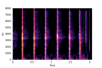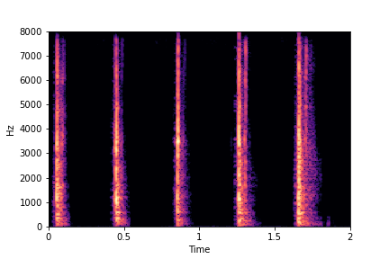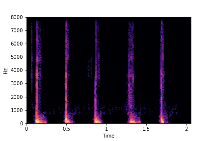 of bright sounds from hits made on dense material surfaces such as glass, tile, ceramic or metal